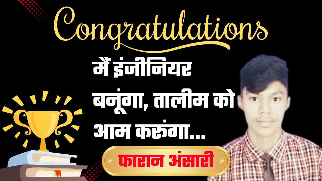 मैं एक सफल इंजिनयर बनूंगा और समाज में तालीमी जागरुकता के लिये काम करूंगा। यह कहना है मोहम्मद फारान अंसारी…