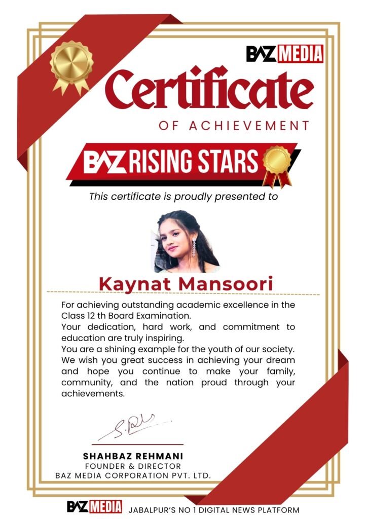 ЁЯМЯ рдмрд╛рдЬ рд░рд╛рдЗрдЬрд┐рдВрдЧ рд╕реНрдЯрд╛рд░ | рдЬрдмрд▓рдкреБрд░ рдХреА рдмреЗрдЯреА рдХрд╛рдпрдирд╛рдд рдордВрд╕реВрд░реА рдиреЗ рд╣рд╛рд╕рд┐рд▓ рдХреА рд╢рд╛рдирджрд╛рд░ рдХрд╛рдордпрд╛рдмреА