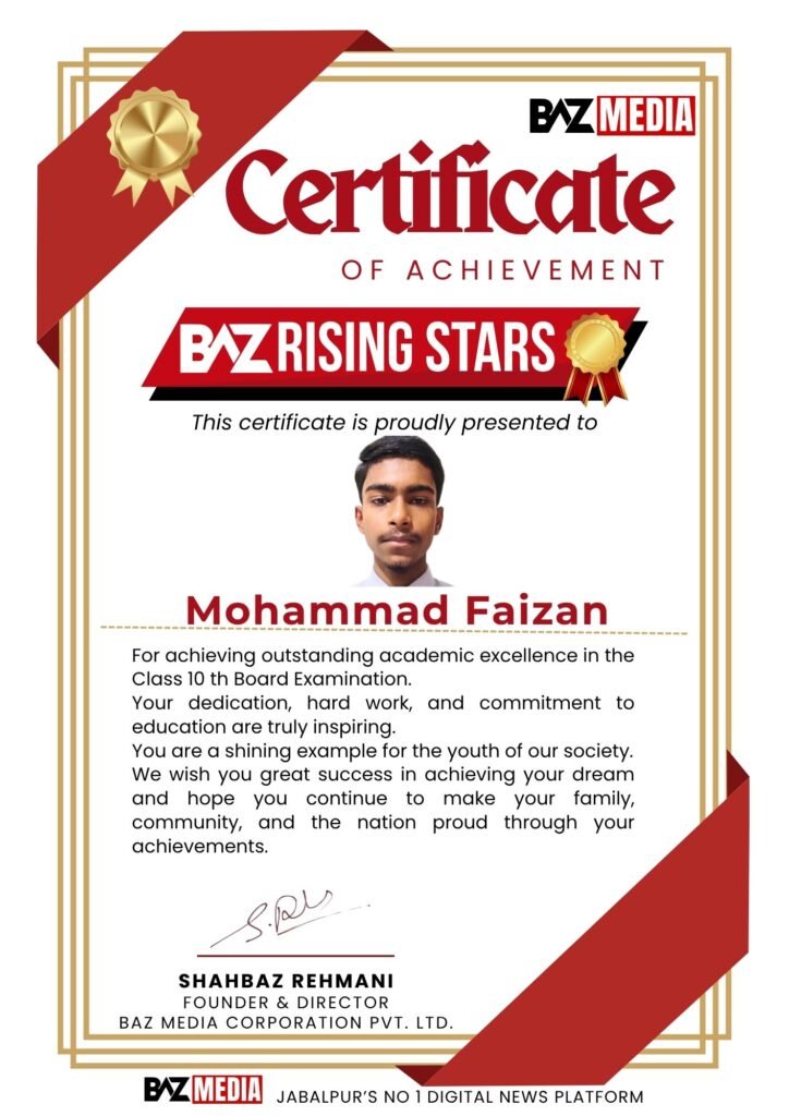 рдЧрд╛рдбрд░рд╡рд╛рд░рд╛ (рдо.рдкреНрд░.) ред рдореЗрд╣рдирдд, рд▓рдЧрди рдФрд░ рдмрдбрд╝реЗ рдЦреНрд╡рд╛рдм рдЬрдм рдПрдХ рд╕рд╛рде рд╣реЛрддреЗ рд╣реИрдВ, рддреЛ рдХрд╛рдордпрд╛рдмреА рдЦреБрдж рд░рд╛рд╕реНрддрд╛ рдмрдирд╛ рд▓реЗрддреА рд╣реИред рдЧрд╛рдбрд░рд╡рд╛рд░рд╛ рдХреЗ рд░рд╣рдиреЗ рд╡рд╛рд▓реЗ рдореЛрд╣рдореНрдордж рдлреИрдЬрд╛рди рд░рдИрди рдиреЗ 10рд╡реАрдВ рдмреЛрд░реНрдб рдЗрдореНрддрд┐рд╣рд╛рди рдореЗрдВ рдмреЗрд╣рддрд░реАрди рдХрд╛рдордпрд╛рдмреА рд╣рд╛рд╕рд┐рд▓ рдХрд░рддреЗ рд╣реБрдП 500 рдореЗрдВ рд╕реЗ 449 рдирдВрдмрд░ рд╣рд╛рд╕рд┐рд▓ рдХрд┐рдП рдФрд░ рдлрд░реНрд╕реНрдЯ рдбрд┐рд╡реАрдЬрди рд╕реЗ рдкрд╛рд╕ рд╣реЛрдХрд░ рдЕрдкрдиреЗ рд╡рд╛рд▓рд┐рджреИрди рдФрд░ рдкреВрд░реЗ рдЗрд▓рд╛рдХреЗ рдХрд╛ рдирд╛рдо рд░реЛрд╢рди рдХрд░ рджрд┐рдпрд╛ред