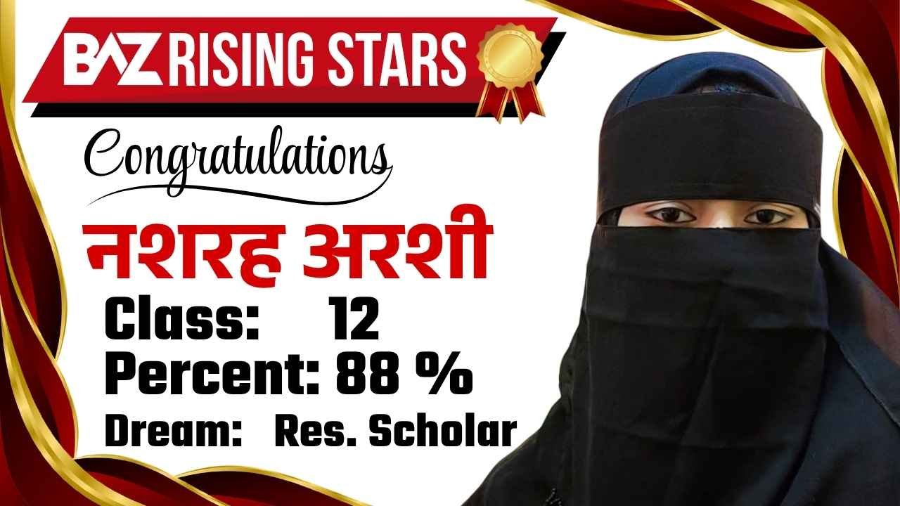 рдореЗрд╣рдирдд, рд▓рдЧрди рдФрд░ рддрд╛рд▓реАрдо рдХреЗ рдЬрдЬрд╝реНрдмреЗ рдХреЗ рд╕рд╛рде рдЖрдЧреЗ рдмрдврд╝рддреЗ рд╣реБрдП рд╣рдЬреНрдЬрди рдирд╢рд░рд╣ рдЕрд░рд╢реА рдиреЗ 12рд╡реАрдВ рдмреЛрд░реНрдб рдЗрдореНрддрд┐рд╣рд╛рди рдореЗрдВ рдмреЗрд╣рддрд░реАрди рдХрд╛рдордпрд╛рдмреА рд╣рд╛рд╕рд┐рд▓ рдХреА рд╣реИред рдирд╢рд░рд╣ рдиреЗ 500 рдореЗрдВ рд╕реЗ 442 рдирдВрдмрд░ (88.4%) рд╣рд╛рд╕рд┐рд▓ рдХрд┐рдП рдФрд░ рдлрд░реНрд╕реНрдЯ рдбрд┐рд╡реАрдЬрди рд╕реЗ рдкрд╛рд╕ рд╣реЛрдХрд░ рдЕрдкрдиреЗ рдЦрд╛рдирджрд╛рди рдФрд░ рдкреВрд░реЗ рдЗрд▓рд╛рдХреЗ рдХрд╛ рдирд╛рдо рд░реЛрд╢рди рдХрд░ рджрд┐рдпрд╛ред
