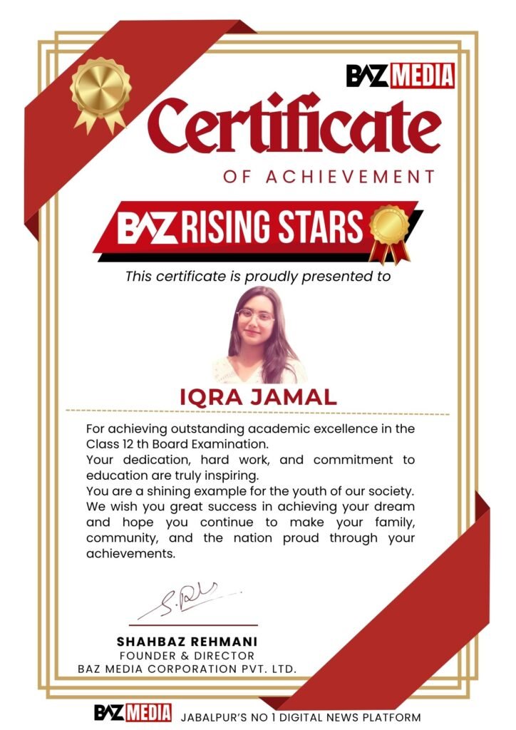 ЁЯМЯ рдмрд╛рдЬ рд░рд╛рдЗрдЬрд┐рдВрдЧ рд╕реНрдЯрд╛рд░ | рдЬрдмрд▓рдкреБрд░ рдХреА рд╣реЛрдирд╣рд╛рд░ рдмреЗрдЯреА рдЗрдХрд░рд╛ рдЬрдорд╛рд▓ тАУ 91.6% рдХреЗ рд╕рд╛рде рдирдИ рд╕реЛрдЪ рдХреА рдорд┐рд╕рд╛рд▓