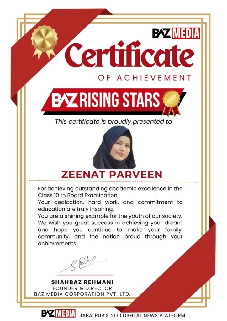 ЁЯМЯ рдмрд╛рдЬ рд░рд╛рдЗрдЬрд┐рдВрдЧ рд╕реНрдЯрд╛рд░ | рдЬрдмрд▓рдкреБрд░ рдХреА рд╣реЛрдирд╣рд╛рд░ рдмреЗрдЯреА рдЬрд╝реАрдирдд рдкрд░рд╡реАрди тАУ рдореЗрд╣рдирдд рдФрд░ рд╣реМрд╕рд▓реЗ рдХреА рдирдИ рдкрд╣рдЪрд╛рди