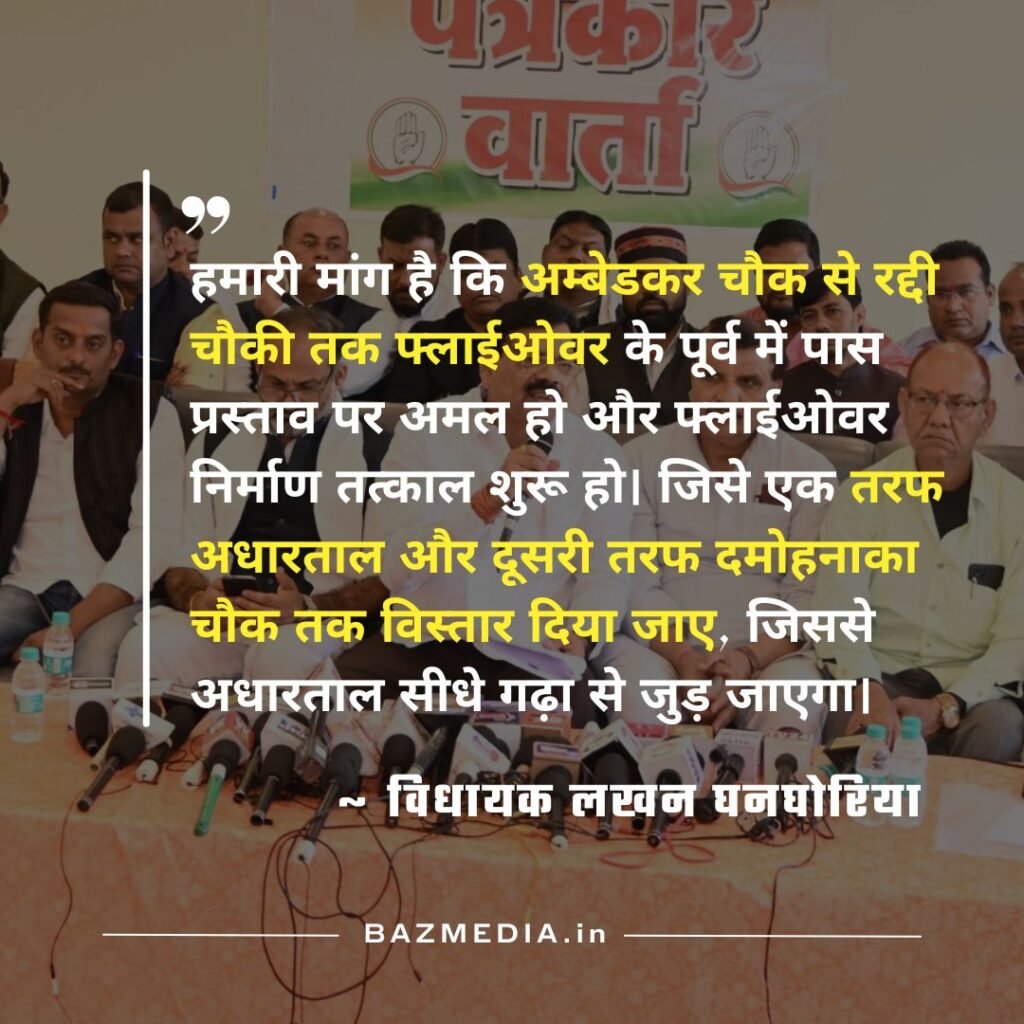 इसके साथ ही, श्री घनघोरिया ने 7 दिसंबर को दोपहर 12 बजे अम्बेडकर चौक से रद्दी चौकी तक पदयात्रा निकालने की घोषणा की। उन्होंने कहा कि यह फ्लाईओवर लाखों लोगों के लिए बेहद जरूरी है, और यह फ्लाईओवर किसी भी हाल में बनेगा।