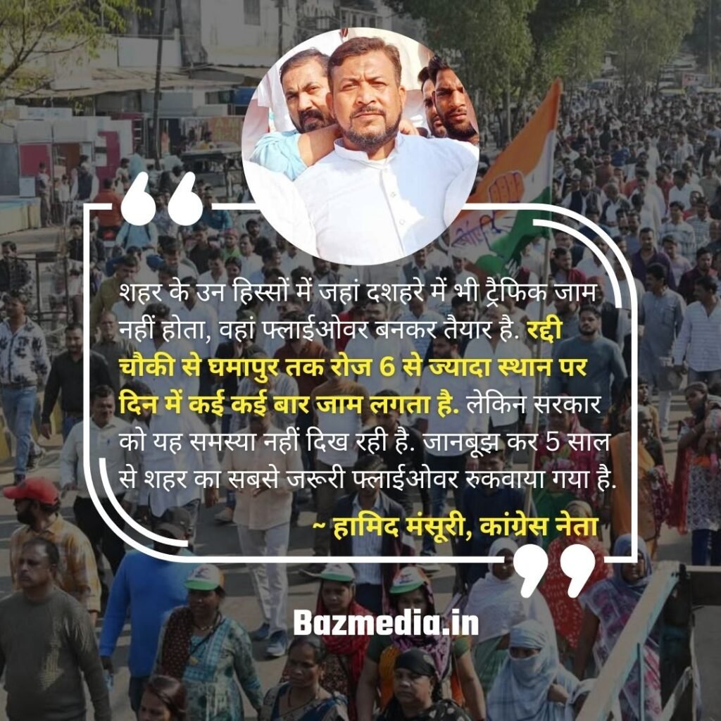 पार्षद गुलाम हुसैन ने यहां कहा, सिर्फ वाहवाही और पक्षपात की राजनीति के चलते प्रदेश सरकार हजारों लोगों को परेशान कर रही है. फ्लाईओवहर नहीं बनने से रद्दी चौकी से घमापुर मार्ग पर ट्रैफिक की गंभीर समस्या हो चुकी है. कारोबार, रोजगार बर्बाद हो रहा है.