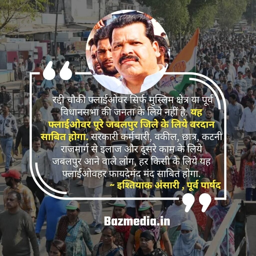 जबलपुर में शनिवार को पूर्व विधानसभा क्षेत्र की जनता, पूर्व क्षेत्र की सबसे बड़ी समस्या ‘ट्रैफिक और उसके समाधान’ के लिए रद्दी चौकी से अम्बेडकर चौक फ्लाईओवर का निर्माण कार्य तत्काल शुरु करवाने की मांग को लेकर सड़क पर उतरी। एक ही नारा था: “हम अपना अधिकार मांगते हैं, नहीं किसी से भीख मांगते।”