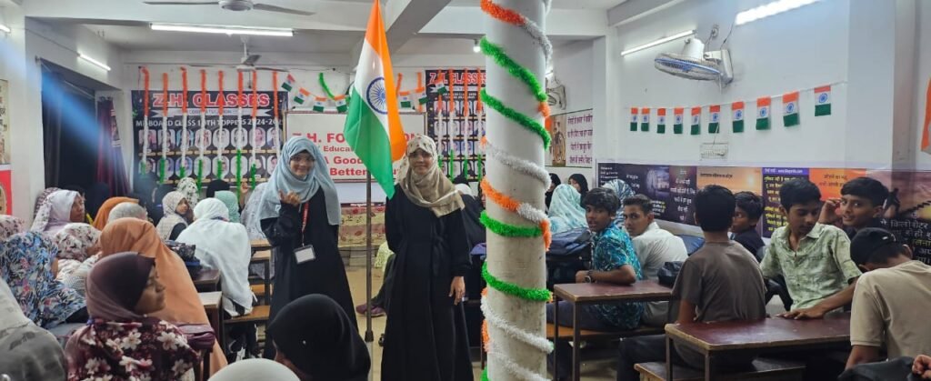 आज़ादी का 79वां पर्व पूरे देश की तरह जबलपुर में भी बड़े उत्साह और जोश के साथ मनाया गया। इसी कड़ी में शहर की सामाजिक व शैक्षिक संस्था ज़ेड एच फाउंडेशन ने अपने हेड ऑफिस और रद्दी चौकी स्थित क्लासेस कैंपस में स्वतंत्रता दिवस समारोह का आयोजन किया। कार्यक्रम में बड़ी संख्या में छात्र-छात्राओं, शिक्षकों, अभिभावकों और स्थानीय लोगों ने शिरकत की।