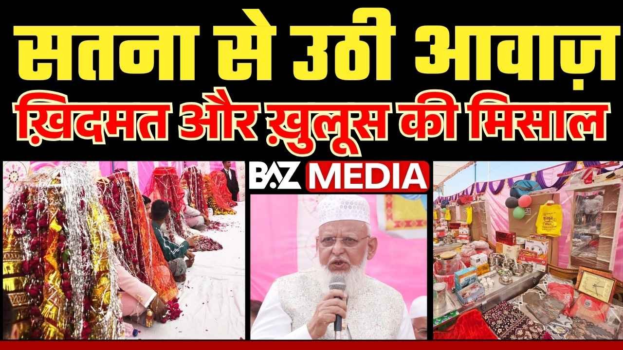 बाज मीडिया, सतना। दिलों में ख़ैर की नीयत लिए सतना के नज़ीराबाद मैदान में अल–बरकात वेलफेयर सोसाइटी के ज़ेर-ए-एहतिमाम 12 जोड़ो का सामूहिक निकाह कार्यक्रम पूरे वक़ार, सादगी और रूहानियत के माहौल में संपन्न हुआ। निकाह की रस्में जब अदा हो रही थीं, तब पूरा मैदान “बारकल्लाहु लका वा बारका अलैका वा जमा बैनकुमा फी ख़ैर” की मुबारक सदाओं से गूंज उठा।