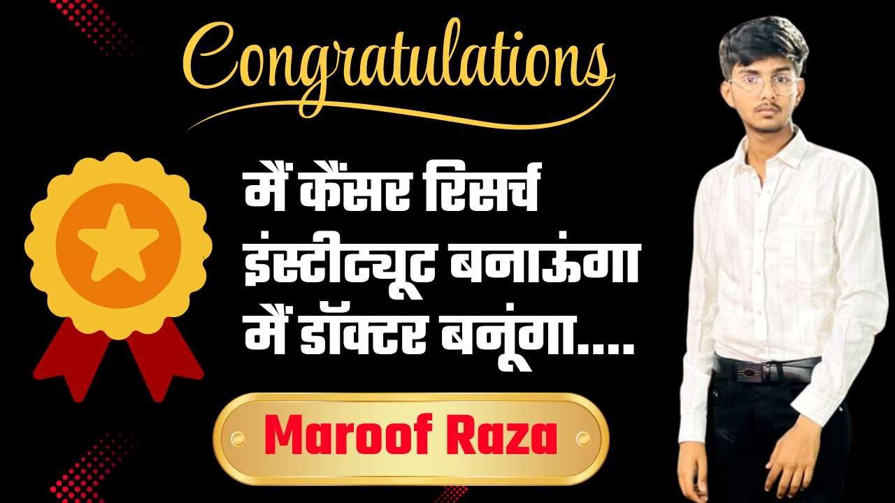 यह कहना है मारूफ रजा अंसारी का जिन्होंने 12 वीं क्लास में 90 प्रतिशत से ज्यादा नम्बर हासिल कर शानदार कामयाबी हासिल की है।