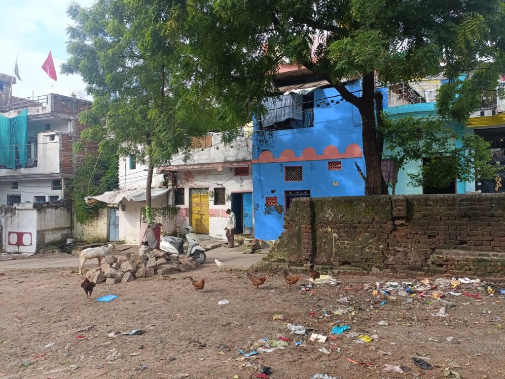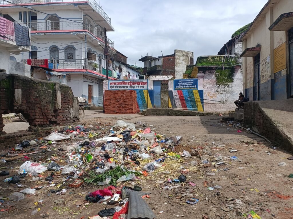 स्कूल के गेट पर कचरे का जमावड़ा