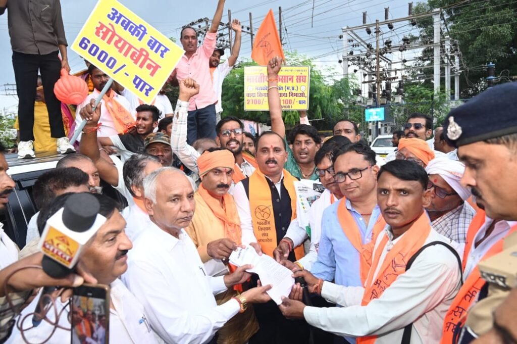 किसानों ने खाद की कमी को भी लेकर विरोध जताया और खाद की बोरियों को ढोकर प्रदर्शन किया। इस दौरान किसान संघ के जिलाध्यक्ष रामदास पटैल और जिला मंत्री धनंजय पटैल ने अतिरिक्त कलेक्टर ऋषभ जैन और नाथूराम गौंड़ को ज्ञापन सौंपा, जिसमें एमएलटी वेयरहाउस में रूके हुए मूंग-उड़द का भुगतान तुरंत करने की मांग की गई।
