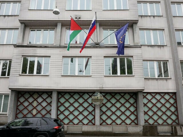 स्लोवेनियाई सरकार ने राजधानी के केंद्र में सरकारी भवन के सामने स्लोवेनियाई और यूरोपीय संघ के झंडे के साथ फिलिस्तीनी झंडा फहराया।
